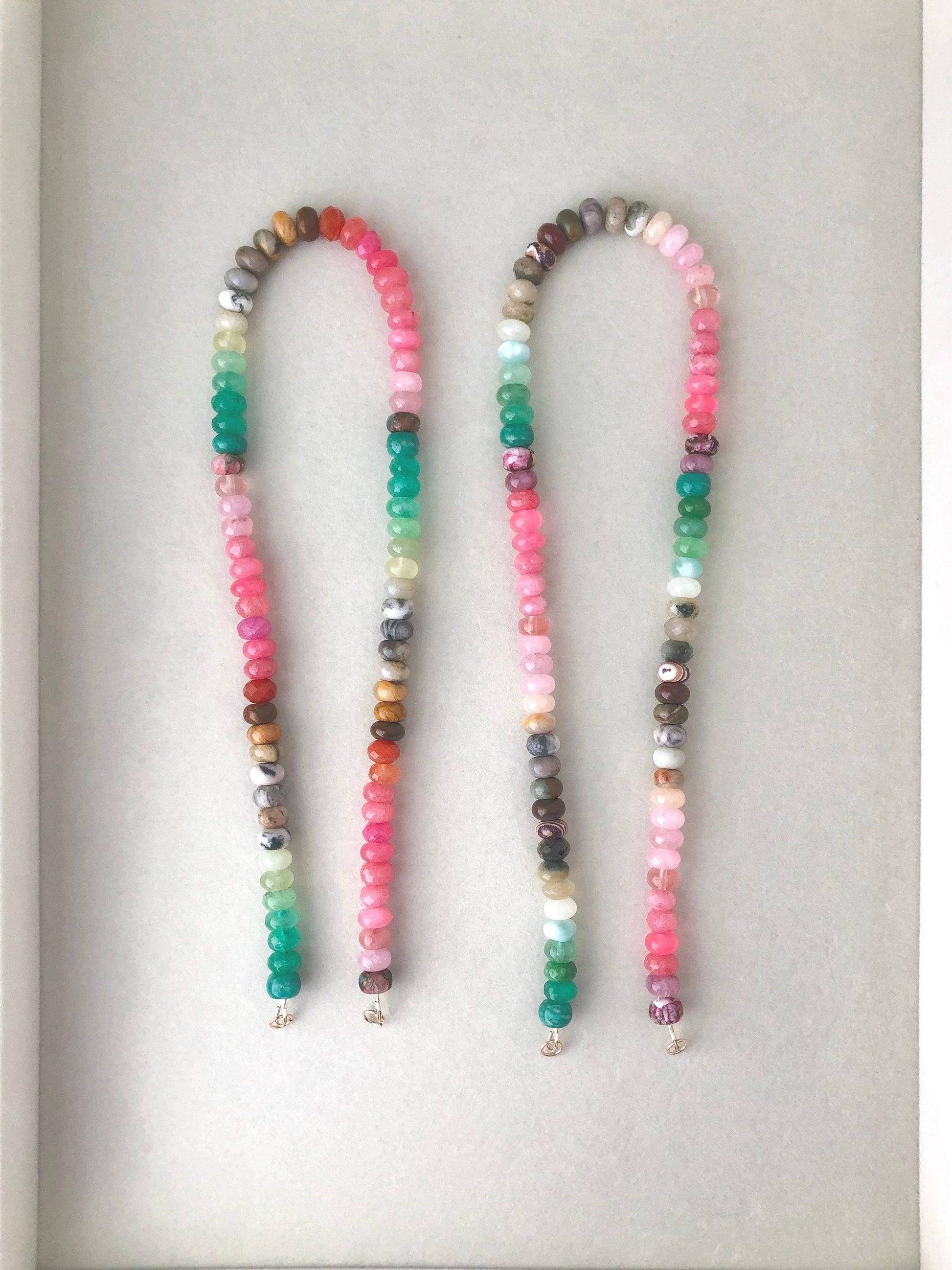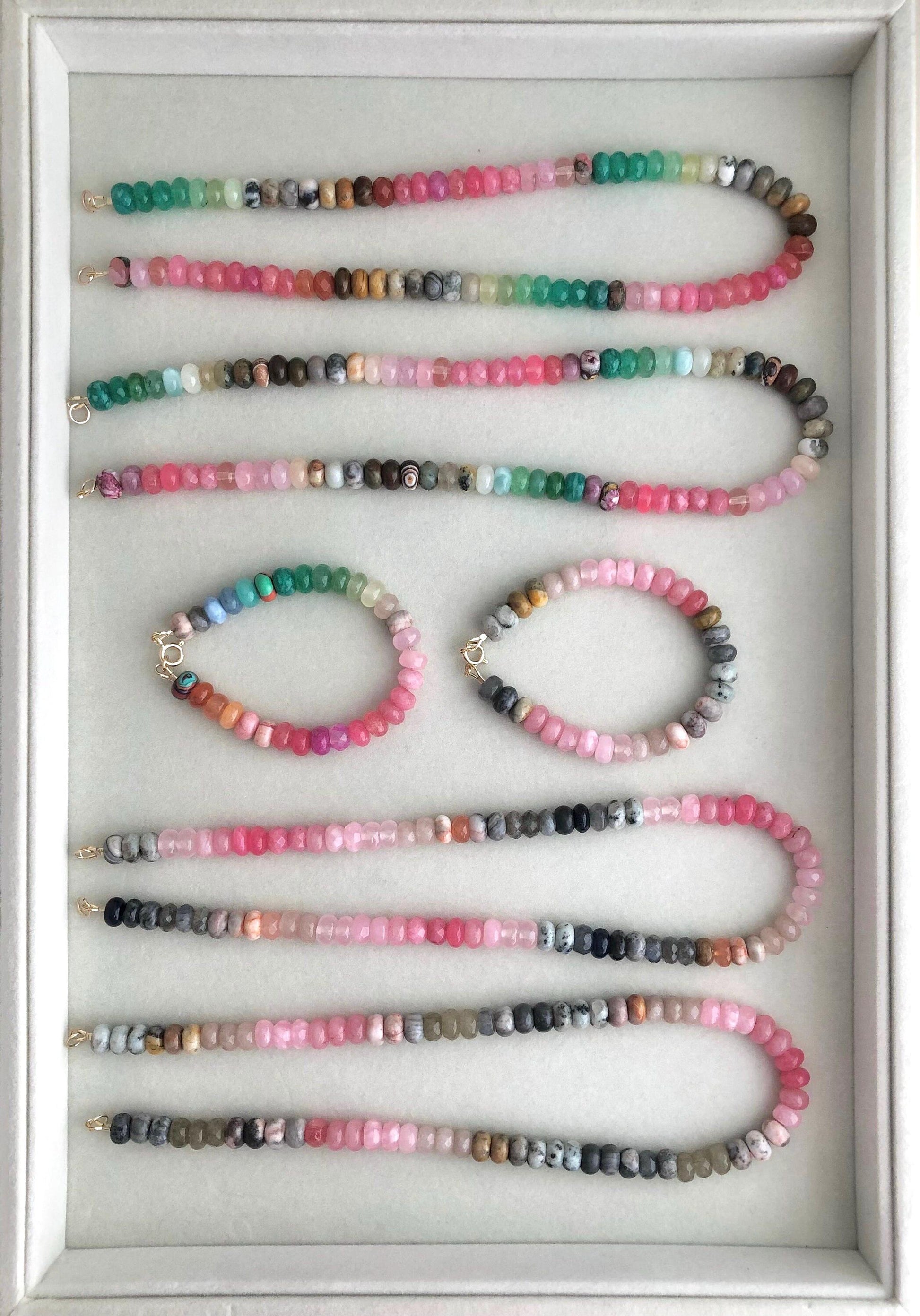 2 Colorful, joyful, one-of-a-kind wearable art gemstone bead necklaces and 1 bracelet.