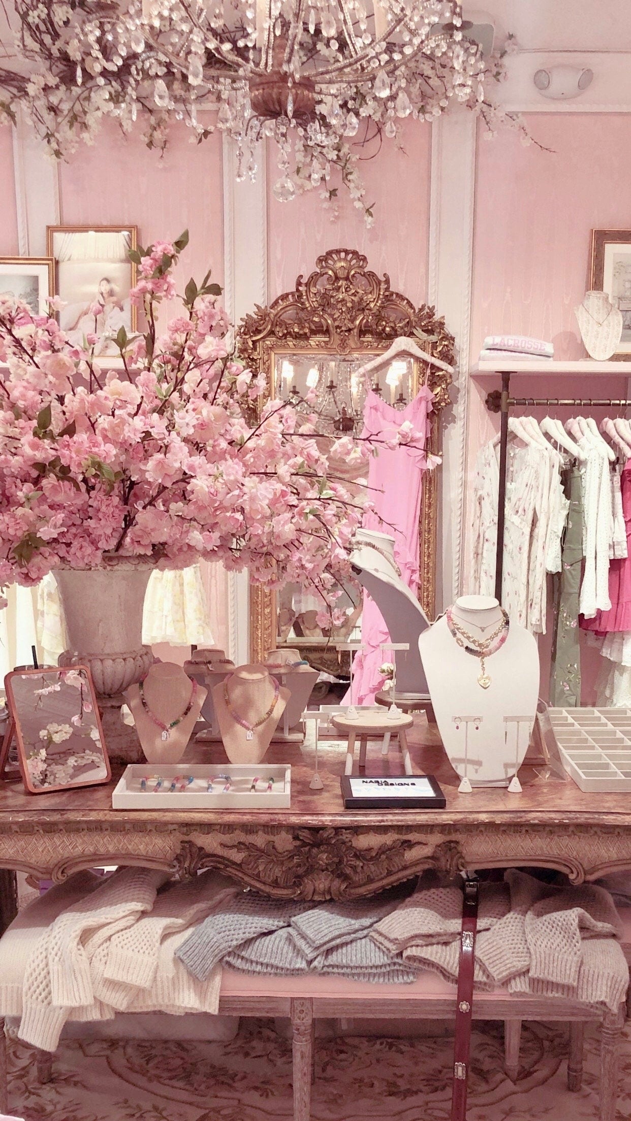 * Dogwood Blossom necklace 2, Lighter Pink, 17.” jump ring to jump ring ends.
