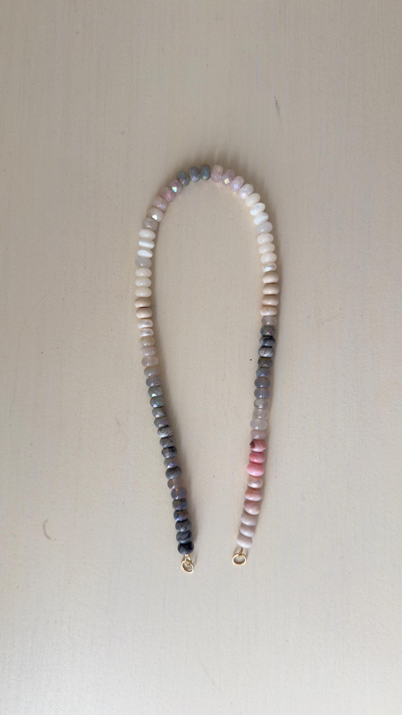 Glimmer Gray3 Necklace: one of a kind ombré gemstone necklace, Emerge Collection, soft grays, creams, pale blush, tough of sparkle